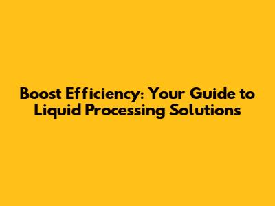 Boost Efficiency: Your Guide To Liquid Processing Solutions