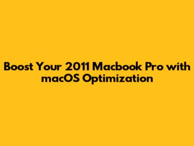Boost Your 2011 Macbook Pro With MacOS Optimization