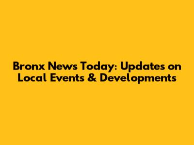 Bronx News Today: Updates On Local Events & Developments