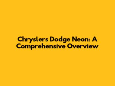 Chrysler's Dodge Neon: A Comprehensive Overview
