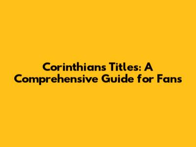 Corinthians Titles: A Complete Guide