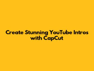 Create Stunning YouTube Intros With CapCut