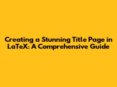 Creating A Stunning Title Page In LaTeX: A Comprehensive Guide