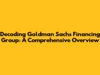 Decoding Goldman Sachs Financing Group: A Comprehensive Overview