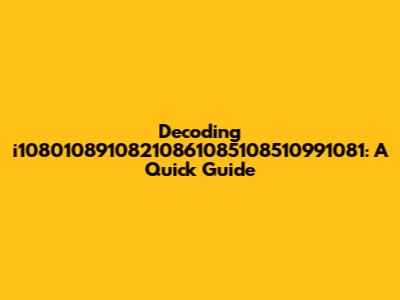 Decoding I10801089108210861085108510991081: A Quick Guide