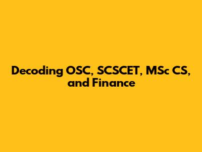 Decoding OSC, SCSCET, MSc CS, And Finance