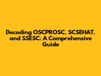 Hey guys! Ever stumble upon acronyms that make you scratch your head? Well, get ready to dive into the world of OSCPROSC, SCSEHAT, and SSESC. These aren't just random letters; they represent important standards and frameworks. Let's break them down, understand their significance, and see how they work. We'll explore what these acronyms stand for, their core purposes, and how they play a role in various fields. Whether you're a seasoned professional or just curious, this guide will help you understand these essential concepts. So, buckle up; we're about to demystify these key elements and gain a clearer understanding of their roles and applications. This isn't going to be your typical dry explanation; we're going to make it interesting and easy to follow. Ready to learn something new?
