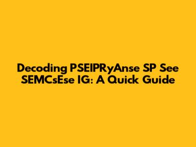 Decoding PSEIPRyAnse SP See SEMCsEse IG: A Quick Guide