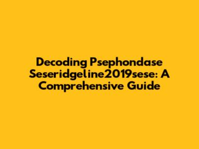 Decoding Psephondase Seseridgeline2019sese: A Comprehensive Guide