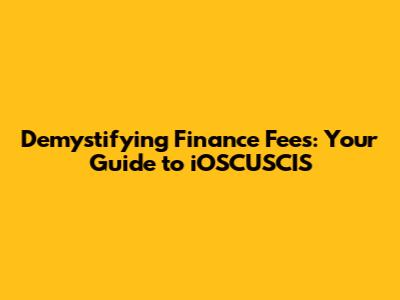 Demystifying Finance Fees: Your Guide To IOSCUSCIS