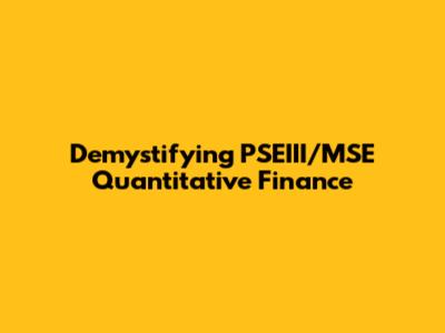 Demystifying PSEIII/MSE Quantitative Finance