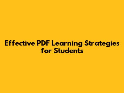 Effective PDF Learning Strategies For Students