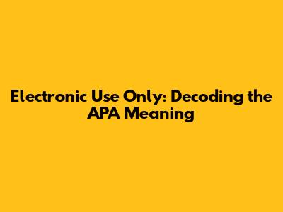 Electronic Use Only: What Does It Mean In APA?