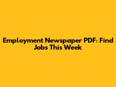 Employment Newspaper PDF: Find Jobs This Week