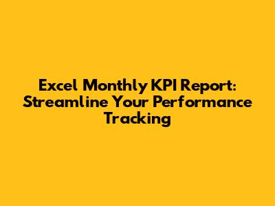 Excel Monthly KPI Report: Streamline Your Performance Tracking