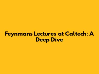 Feynman's Lectures At Caltech: A Deep Dive
