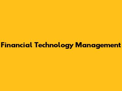 Understanding Financial Technology Management