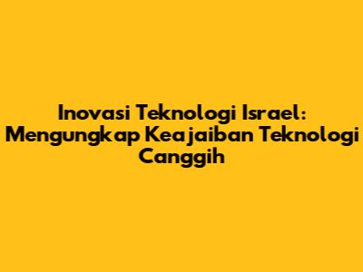 Israel, negara yang dikenal dengan inovasi teknologinya yang luar biasa, telah menghasilkan berbagai penemuan yang mengubah dunia. Dari pertanian hingga pertahanan, teknologi Israel telah memberikan dampak signifikan di berbagai sektor. Mari kita telusuri lebih dalam tentang teknologi luar biasa yang telah diciptakan oleh para ilmuwan dan insinyur Israel. Dalam artikel ini, kita akan membahas berbagai aspek teknologi Israel, mulai dari inovasi di bidang pertanian, teknologi pertahanan yang canggih, hingga kontribusi mereka dalam industri medis dan teknologi informasi. Dengan pemahaman yang lebih baik tentang teknologi Israel, kita dapat menghargai betapa negara ini telah memberikan kontribusi besar bagi kemajuan global.
