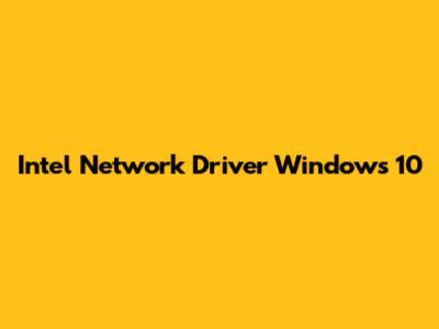 Intel Network Driver: Update For Windows 10