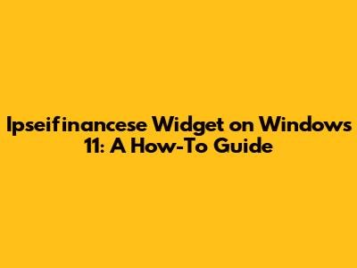 Ipseifinancese Widget On Windows 11: A How-To Guide