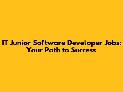 IT Junior Software Developer Jobs: Your Path To Success