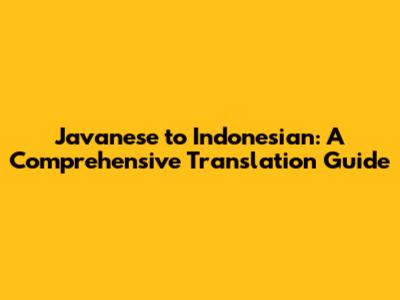 Javanese To Indonesian: A Comprehensive Translation Guide