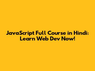 JavaScript Full Course In Hindi: Learn Web Dev Now!
