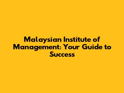 Malaysian Institute Of Management: Your Guide To Success