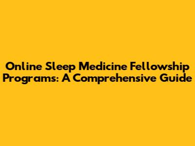 Online Sleep Medicine Fellowship Programs: A Comprehensive Guide