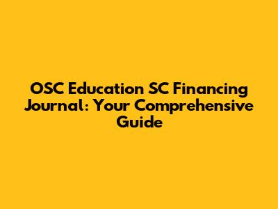 OSC Education SC Financing Journal: Your Guide
