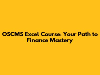 OSCMS Excel Course: Your Path To Finance Mastery