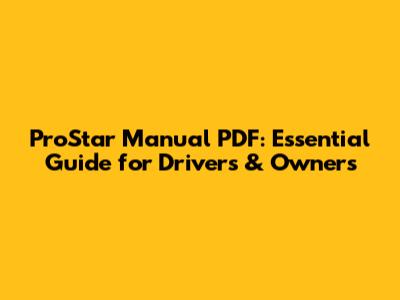 ProStar Manual PDF: Essential Guide For Drivers & Owners