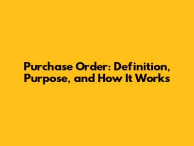 Purchase Order: Definition, Purpose, And How It Works