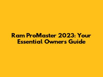 Ram ProMaster 2023: Your Essential Owner's Guide