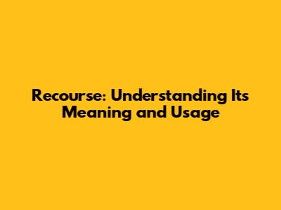 Recourse: Understanding Its Meaning And Usage