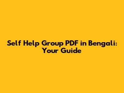 Self Help Group PDF In Bengali: Your Guide