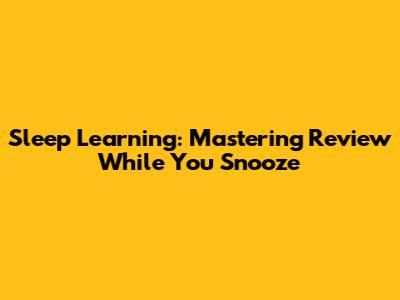 Sleep Learning: Mastering Review While You Snooze