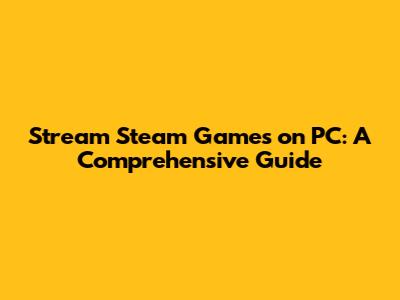 Stream Steam Games On PC: A Comprehensive Guide