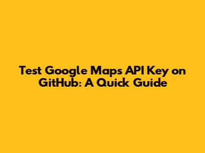 Test Google Maps API Key On GitHub: A Quick Guide