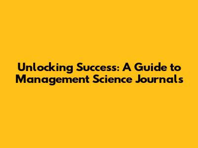 Unlocking Success: A Guide To Management Science Journals