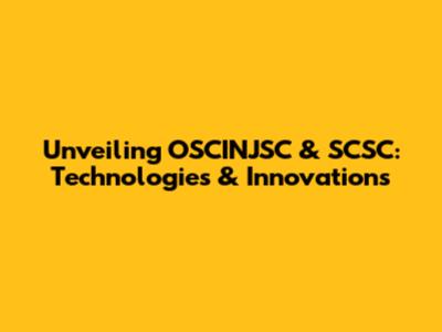 Unveiling OSCINJSC & SCSC: Technologies & Innovations