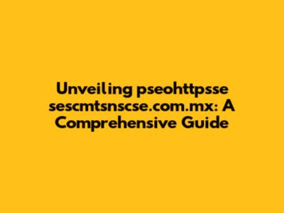 Unveiling Pseohttpsse Sescmtsnscse.com.mx: A Comprehensive Guide