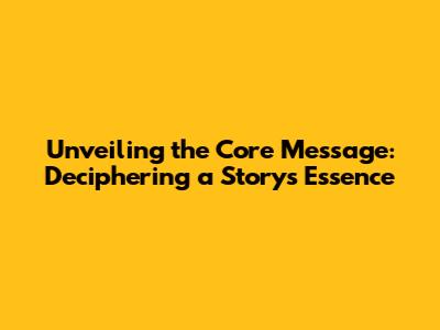 Unveiling The Core Message: Deciphering A Story's Essence