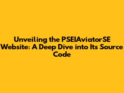 Unveiling The PSEIAviatorSE Website: A Deep Dive Into Its Source Code